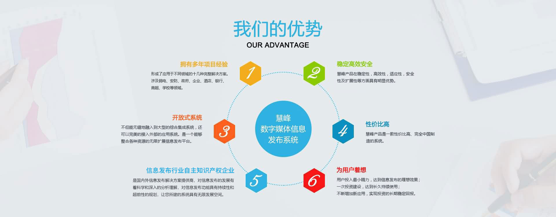 公司本著互惠互利,誠實信用的原則,真誠面對用戶,并愿與社會各界展開廣泛的合作。 公司現已是國內的數字媒體信息發(fā)布系統解決方案提供商,產品涉及大中型企業(yè)、商業(yè)地產、各級黨政機關、軍隊、司法、信息通信、金融、醫(yī)療、教育、能源交通、公用事業(yè)領域。